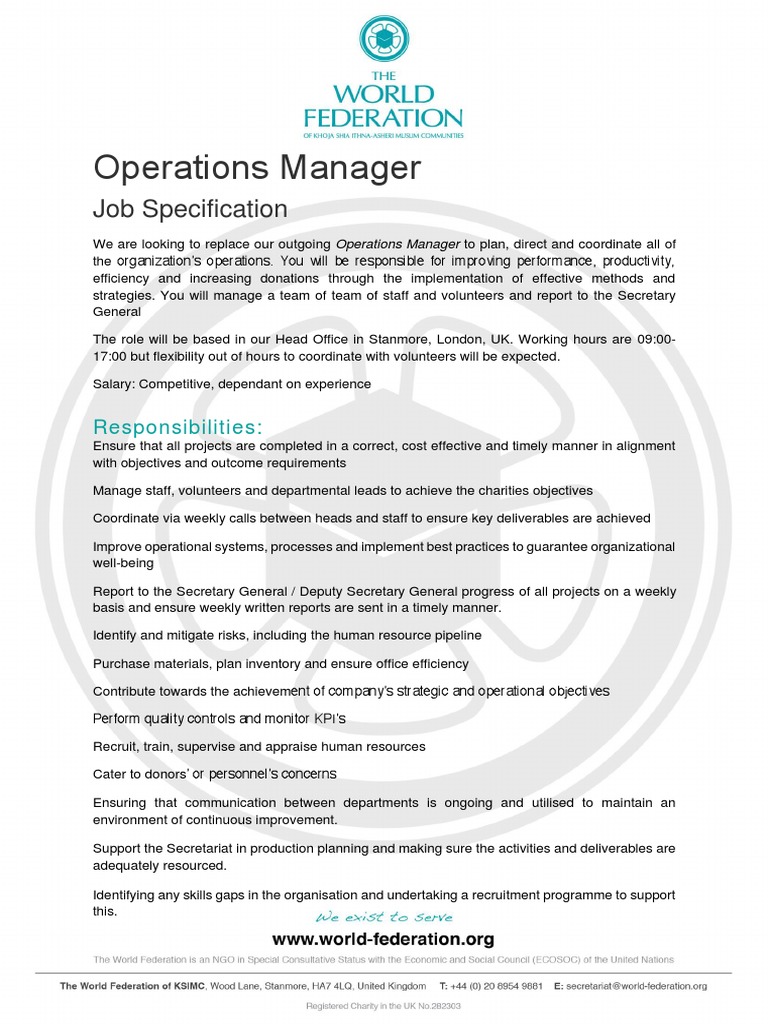 Job Description - Bajaj Capital Limited from companies.naukri.com Regardless of the type of industry or organization the main purpose of an operations manager is to plan and direct operations and improve productivity and efficiency. Operations manager job description template. Build your own operations manager job description using our guide on the top operations manager skills, education, experience and more. Ensure safe and efficient operations. As an operations manager, you see projects through from conception through implementation. Operations manager job description for a resume. In all of the fund. The lack of transparency in these matters was part of the motivation.
